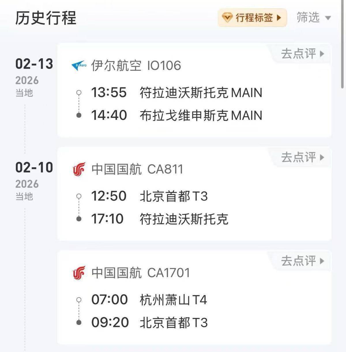 小林先容,她的回家之路共分三段:第一程于北京时辰2月10日上昼7时从杭州飞往俄罗斯符拉迪沃斯托克(海参崴),经北京中转,含税票价1092元,当地时辰下昼5时许抵达。随后,她在海参崴游玩了三天,“是一个很餍足的海边小城,遭受了好多柔软的一又友,玩了浮冰、看了芭蕾舞剧,很有俄罗斯风情。”