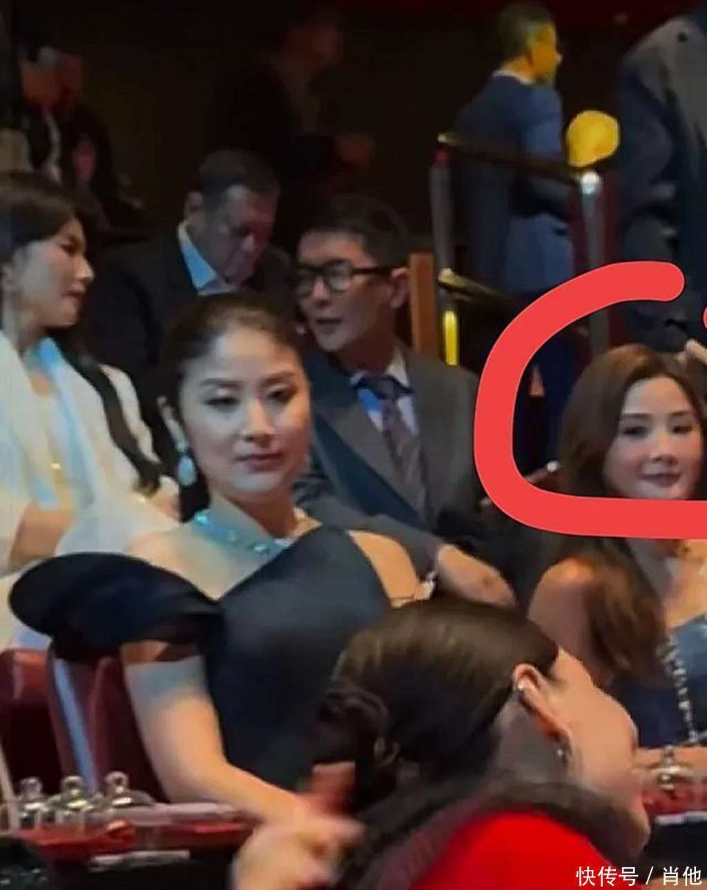 刘涛坐在第三排,天然国民度不低,但电影作品如实未几,排在后头也算严容庄容。
