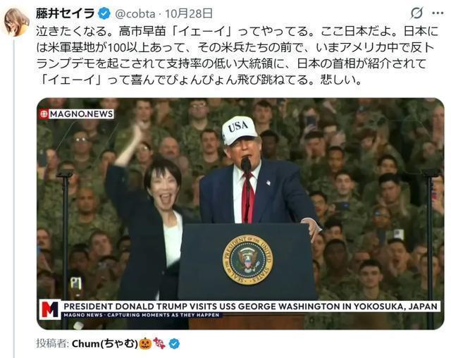念念哭。 高市早苗挥手喊“耶——”。这里是日本呀。 日本有100个以上的好意思军基地,在那些好意思军眼前,由相沿率低下开云(中国)Kaiyun·官方网站 - 登录入口,好意思国国内正在进行反特朗普游行的大统最初容日本首相,她还茂盛得连蹦带跳喊“耶——”。 哀痛。 不愧是搞写稿的大V。同样批判“高市的奉迎社交”,同样1000多万次的阅读量,即使被喷,喷子也得管束着喷。 乡民意态,常东谈主是学不来也领会不了的