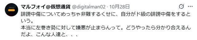 对于诽谤中伤,你很是谴责过,当今我方又在进行“超等”诽谤中伤。 对左倾势力的厌恶,果真停不了。要奈何作念才气跟这种东谈主结束共鸣呀……
