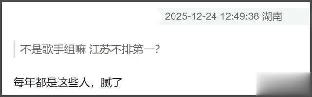 江苏卫视的声势还莫得填塞官宣,但照现在来看,江苏台还所以歌手为主,不少不雅众暗意每年齐是这些东说念主,齐看腻了。