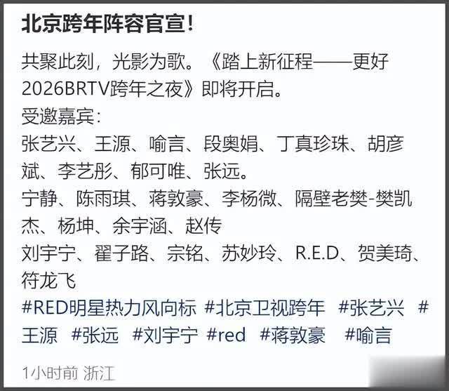 北京卫视的声势也不如往年吵杂,固然有张艺兴这个大流量顶上,但其他嘉宾流量不高,节目收视率很容易断层,录播底本看点就不如直播,再没什么大流量加合手,确切是很难出彩啊!
