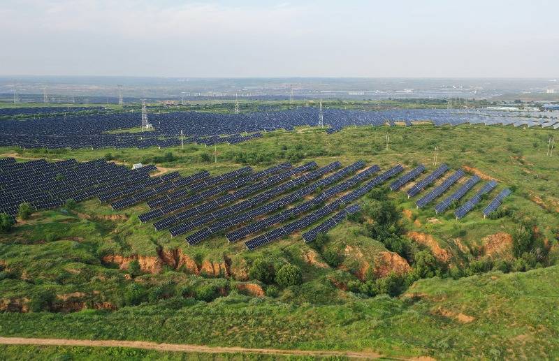 图为天骄绿能50万千瓦采煤千里陷区生态经管光伏发电示范名堂区。新华网发(李志鹏 摄)除科技赋能煤炭百变化身,绿色理念也勾搭在煤炭开采进程中。